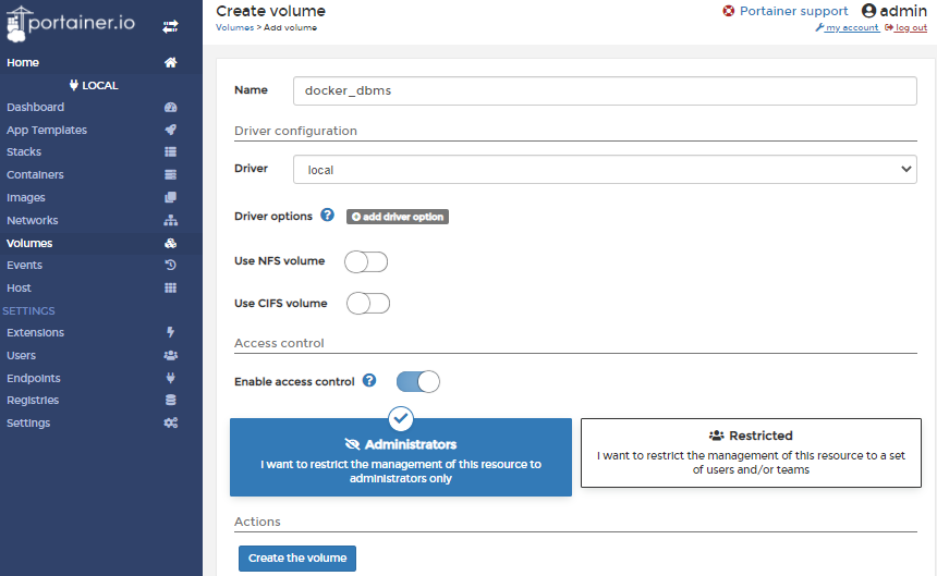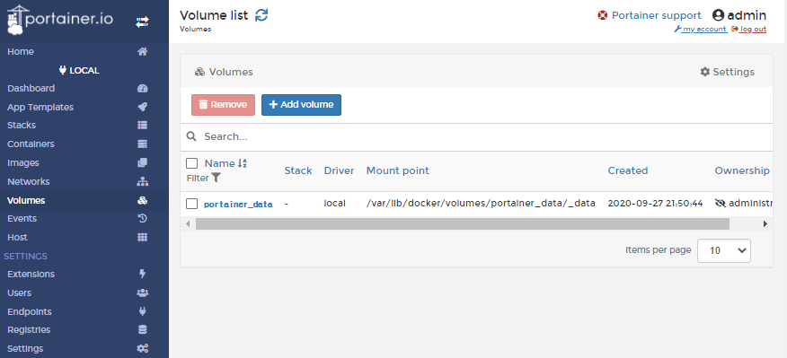 4.4 Portainer 설정 - Volume 생성