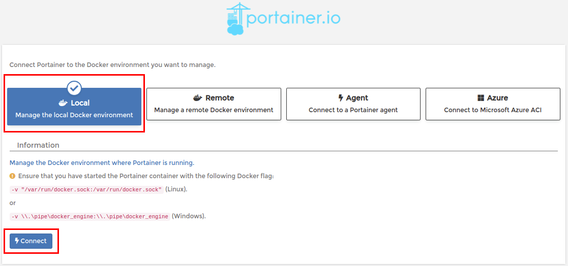 4.2 Portainer 설정 - Docker 환경 접근