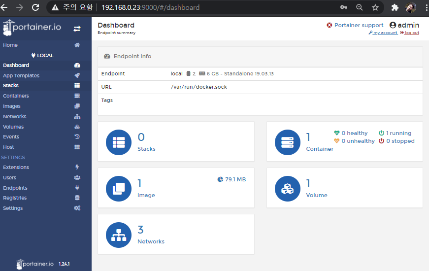 4.3 Portainer 설정 - Dashboard 접속