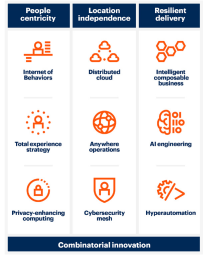 2) 위치 독립성(Location independence): COVID-19는 직원, 고객, 공급 업체 및 조직 생태계가 물리적으로 존재하는 곳으로 이동했다. 위치 독립성은 이 새로운 비즈니스 버전을 지원하기 위한 기술 전환을 필요로 한다.