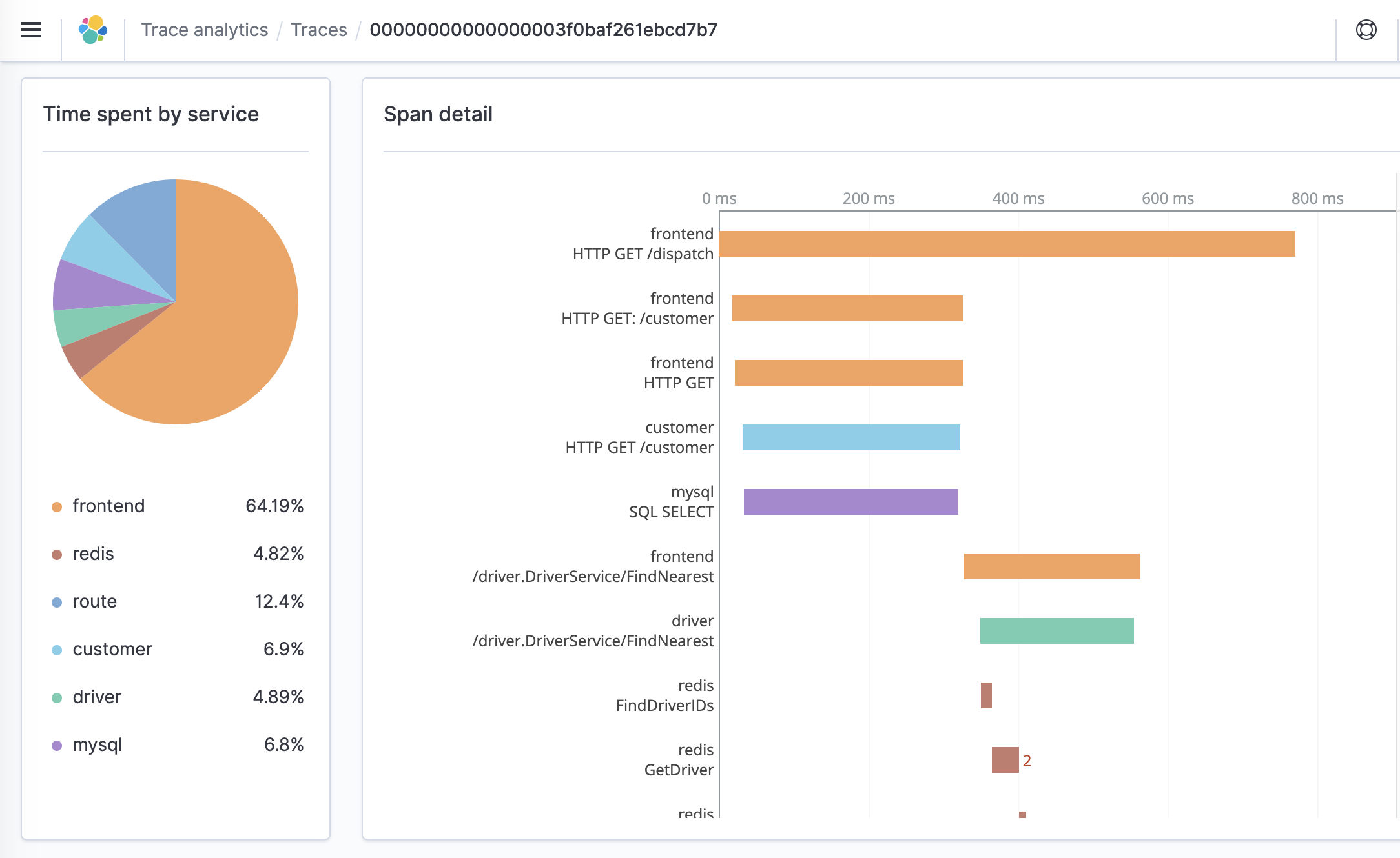 Trace Analytics는 Open Distro for Elasticsearch에서 OpenTelemetry 데이터 를 수집하고 시각화하는 방법을 제공합니다. 데이터는 분산 응용 프로그램에서 성능 문제를 찾고 수정하는 데 도움이 됩니다.