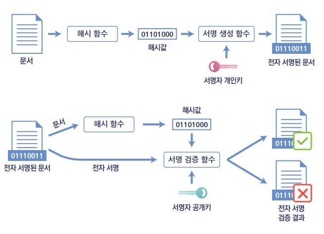 전자 서명 방식은 서명 생성 함수와 서명 검증 함수로 구성된다.