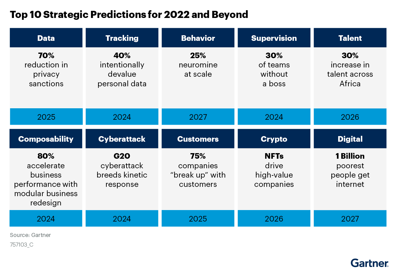 2022년 이후 10대 전략에 대한 예측 (가트너)는 다음과 같이 정리하고 있다.