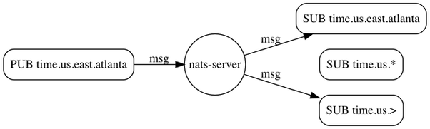 NATS는 메시지를 스트림 또는 주제(토픽)로 지정하는 전송하고, 소비자는 주제(토픽)과 일치하거나 또는 와일드카드를 사용하여 토픽을 구독한다.