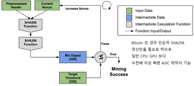 대량의 채굴기로 컴퓨팅 자원을 가진 채굴업자들이 유리한 방식