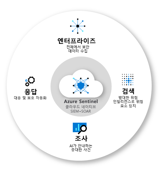 - 온-프레미스와 여러 클라우드의 모든 사용자, 디바이스, 애플리케이션 및 인프라에서 클라우드 규모로 데이터를 수집