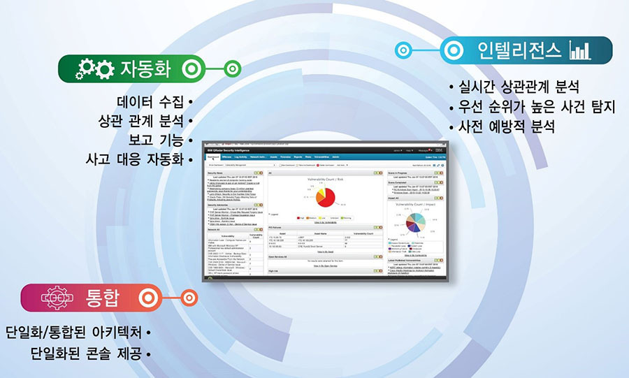 - (보안 인텔리전스) 빠르게 감지하고, 보다 신속한 조사를 가능케 하며, 컴플라이언스를 보장