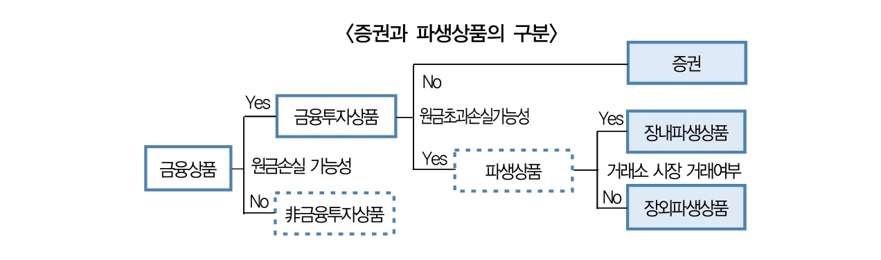 자본 시장법에서는 금융 투자 상품을 증권과 파생상품으로 구분 합니다.