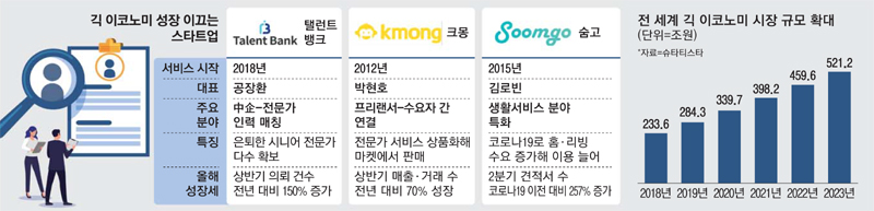 최근 기업이 필요에 따라 단기 계약으로 업무를 맡기는 ‘긱 경제(Gig Economy)’가 확산하면서 성인남녀 10명 중 6명은 긱 경제에서 노동력을 제공하는 이른바 ‘긱 워커(Gig Worker)’를 원하는 것으로 나타났다