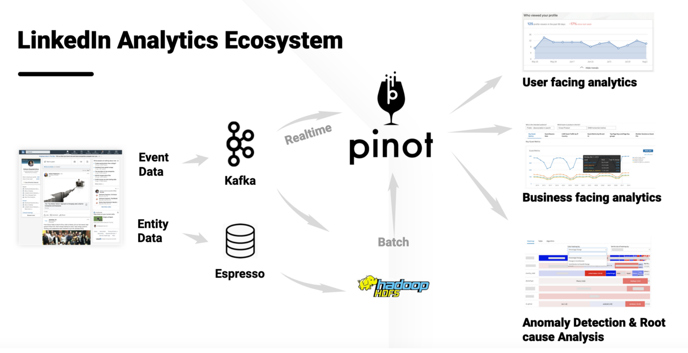 • Pinot은 최신 데이터에 대한 빠른 쿼리를 제공