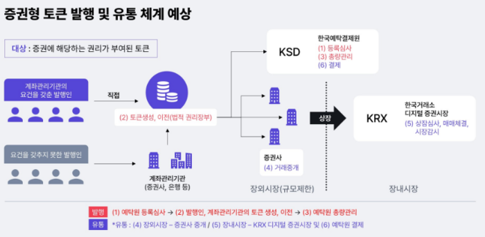 ▲대규모 거래 토큰 상장과 기존 거래소 (KRX)를 통한 디지털증권시장 신설