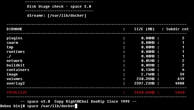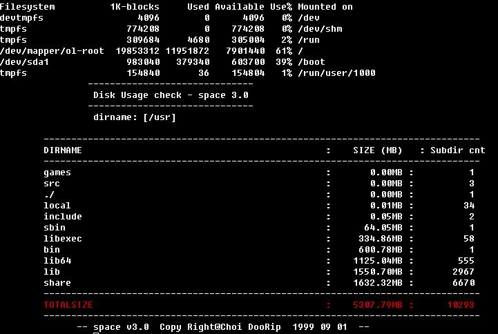 예시화면) space 명령을 이용한 디렉토리 용량 확인 (disk usage check - space 3.0 )