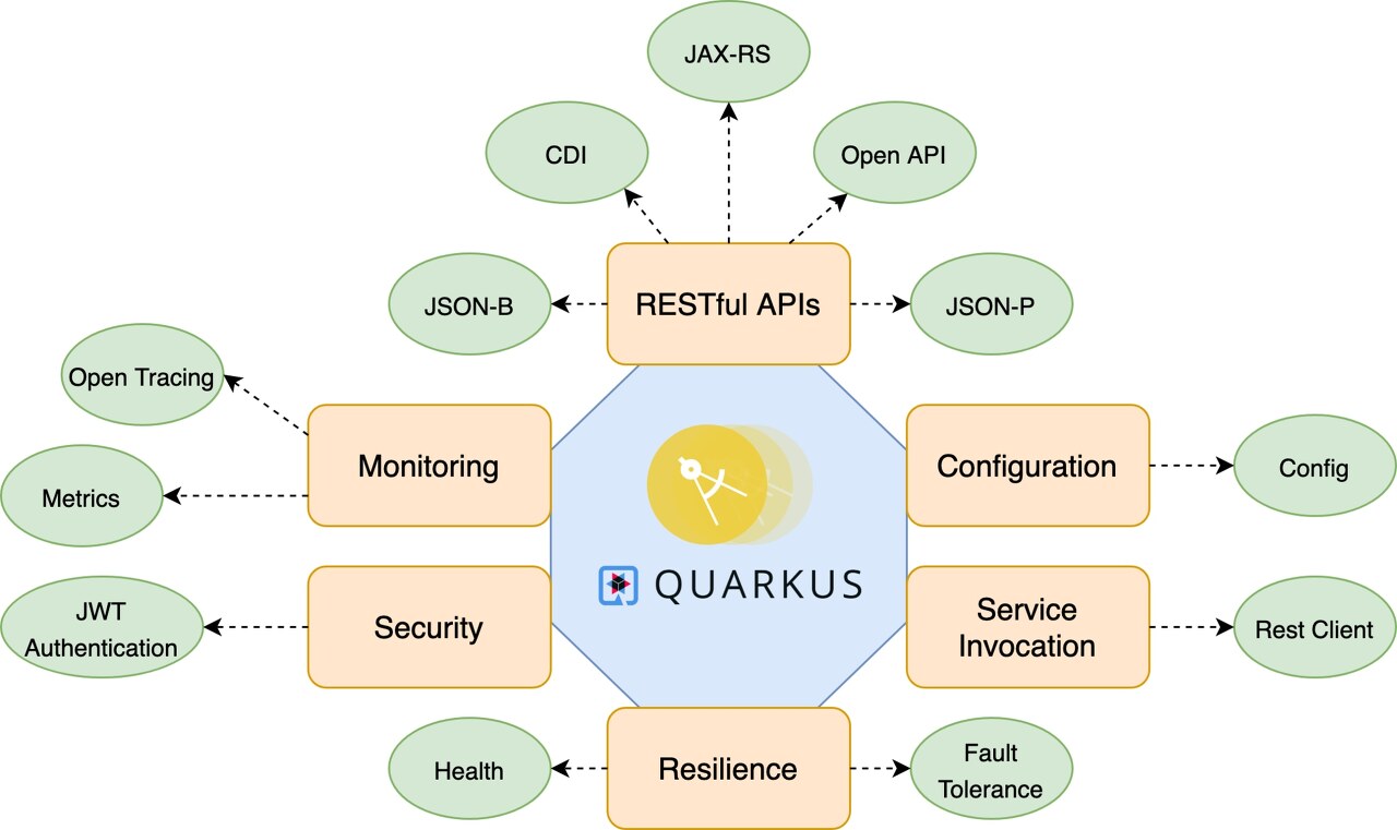 Quarkus는 자바 생태계의 다양한 표준과 호환됩니다. Java API 및 마이크로 프로파일링 지원, 개발자 경험 향상을 위한 툴킷 등의 기능을 제공하여 개발 생산성을 높일 수 있습니다.