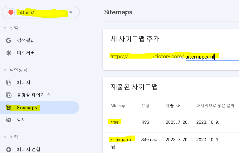 7. 성공하면 웹페이지 sitemap.xml 등록