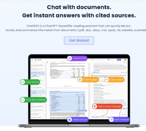 ChatDOC는 문서 ( .pdf, .doc, .docx, .md, .epub, .txt, 웹사이트 , 스캔한 파일등) 에서 정보를 빠르게 추출하여, 찾고, 요약할 수 있는 ChatGPT 기반 파일 읽기 도우미입니다.