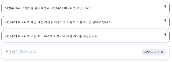 DataGPT에 어떤 질문이든 물어보면 몇 초 안에 데이터 분석가 수준으로 전문적인 답변을 제공 합니다.