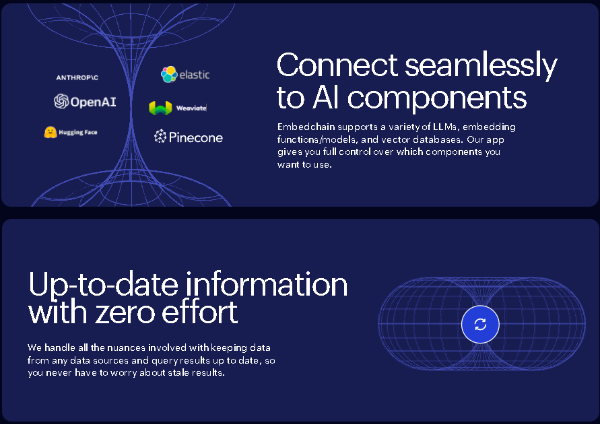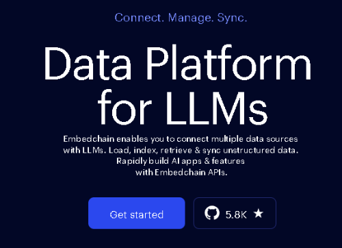 Embedchain은 LLM을 위한 데이터 플랫폼입니다. 구조화되지 않은 데이터를 로드, 색인화, 검색 및 동기화합니다. Embedchain을 사용하면 모든 데이터에 대해 LLM 기반 앱을 쉽게 만들 수 있습니다.