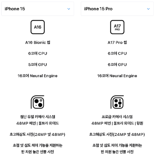 iPhone 모델별 스펙 비교 (아이폰 8 ~ 아이폰 15)