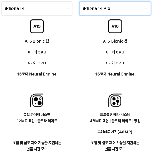 >> 아이폰 모델 비교 : https://www.apple.com/kr/iphone/compare/