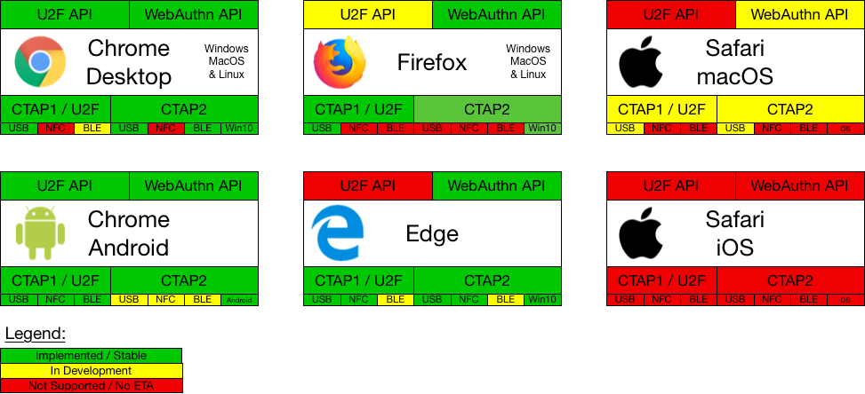 이미 대부분의 최신 브라우저가 WebAuthn API를 지원하고 있습니다.