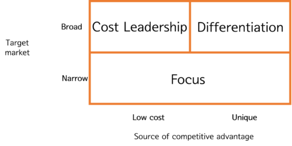 - 집중 전략 (Focus): 특정 시장 세그먼트에 집중하여 그 시장에서 경쟁 우위를 확보.
