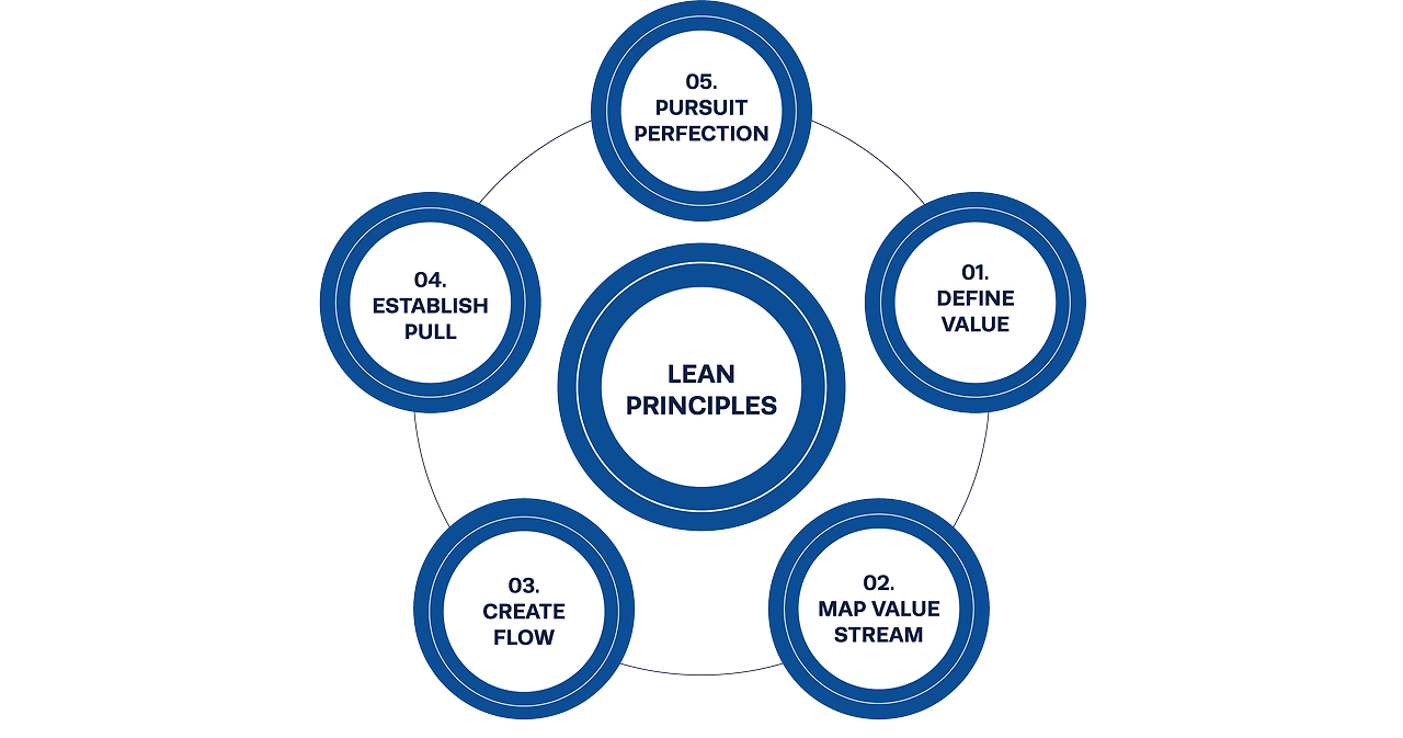 린 방법론은 낭비를 최소화하고, 효율성을 극대화하는 접근 방식을 강조합니다: