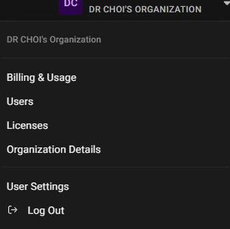 (1) 아래 우측 상단의 "ORGANIZATION" 을 선택 합니다.