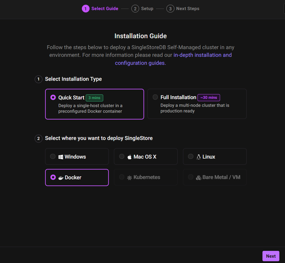 ㅁ STEP 1 : Select Installation Type with Quick Start and select " Docker" install