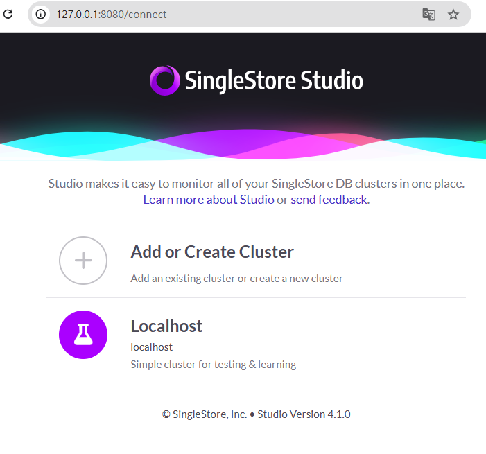 cbb6ef2ba99f singlestore/cluster-in-a-box "bash /startup" About a minute ago Up 42 seconds 0.0.0.0:3306->3306/tcp, :::3306->3306/tcp, 0.0.0.0:8080->8080/tcp, :::8080->8080/tcp, 3307/tcp singlestore-ciab
