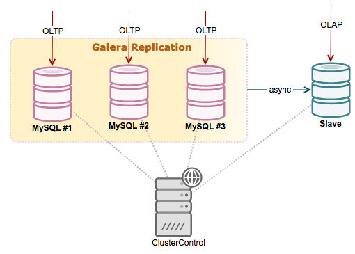 - Galera 노드에서 장기 실행 보고/OLAP 유형 쿼리는 보고 부하가 너무 심해서 노드가 상당한 노력을 기울여 처리해야 하는 경우 전체 클러스터를 느리게 할 수 있습니다. 따라서 비동기 슬레이브를 통해서 보고 쿼리를 독립형 서버로 보내면 Galera를 보고 부하에서 효과적으로 격리할 수 있습니다. 비동기 슬레이브는 원격 라이브 백업 역할도 할 수 있습니다.