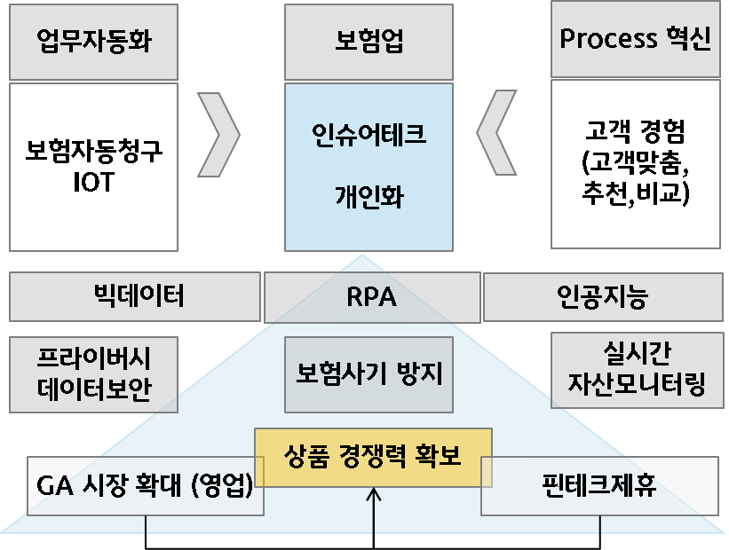 •특히 개인 맞춤 서비스, 고객 채널 개선과 고객 편의성, 업무 효율성 제공 (보험금 자동청구, 보험 비교 등)으로 고객의 만족을 높이고 보험이 사회적인 생활의 근저에서 안정적인 수단으로 자리를 잡을수 있도록 상품의 설명과 추천에 대한 기술은 더욱 주요한 핵심 가치가 될 것입니다.