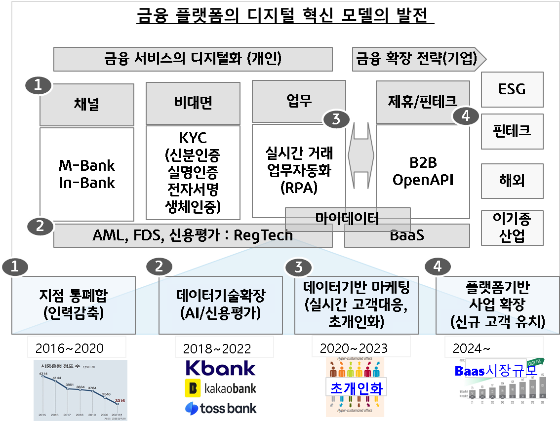 2022년 마이데이터의 출범과 함께 데이터를 활용한 서비스 발굴과 외부 제휴를 통한 비즈니스 확대에 대한 관심으로 향후에는 "Banking as a Service, BaaS" 의 시장은 더욱 발전될 것으로 보입니다.