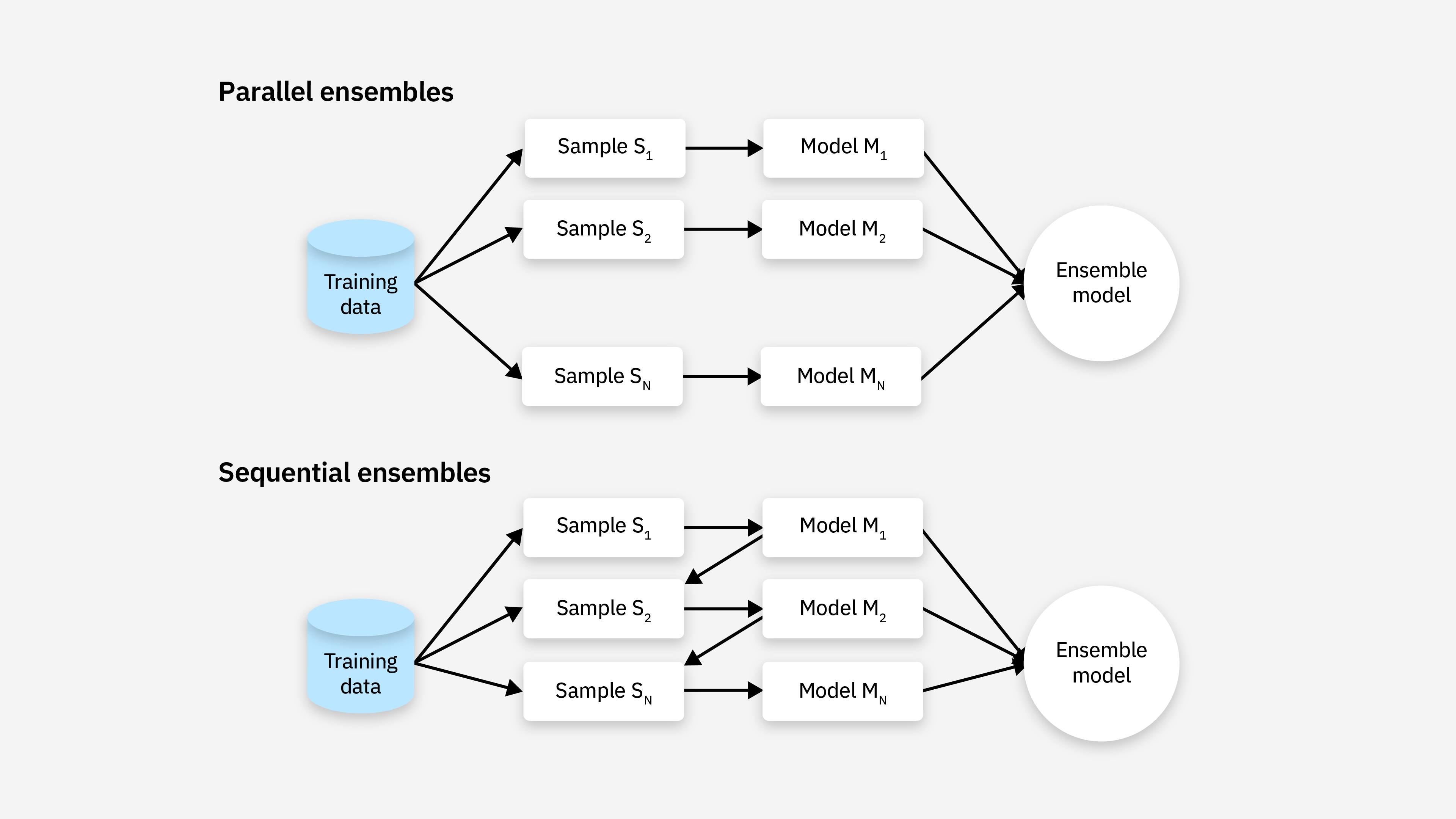 문헌에서는 머신 러닝의 앙상블 학습 방법을 크게 병렬과 순차의 두 가지로 분류합니다.