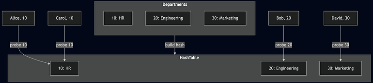 - 해시 테이블에서 해당 키를 빠르게 조회하여 조인 조건에 맞는 행을 결과에 추가합니다.