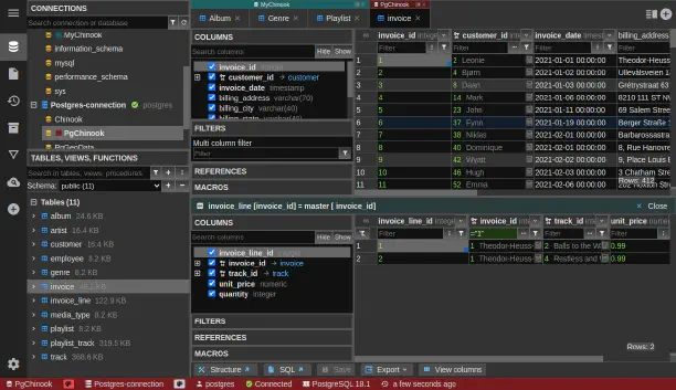 Java 기반 범용 DB 클라이언트로, PostgreSQL 포함 대부분의 주요 RDBMS와 일부 NoSQL까지 지원. - 주요 기능 : JDBC 기반 연결, ER 보기, 데이터 편집.