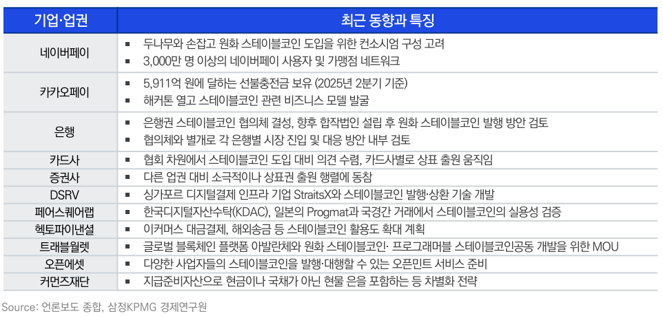 | 결제 인프라 | 스테이블코인을 활용한 실시간 결제·송금 시스템 구축 가능 |
